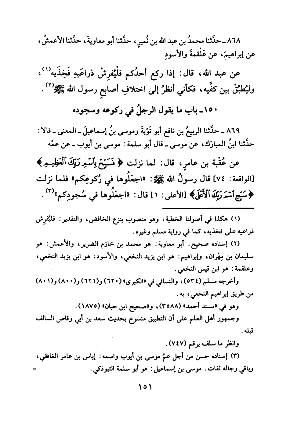 ١٥٠ - باب ما يقول الرجلُ في ركوعه وسجوده