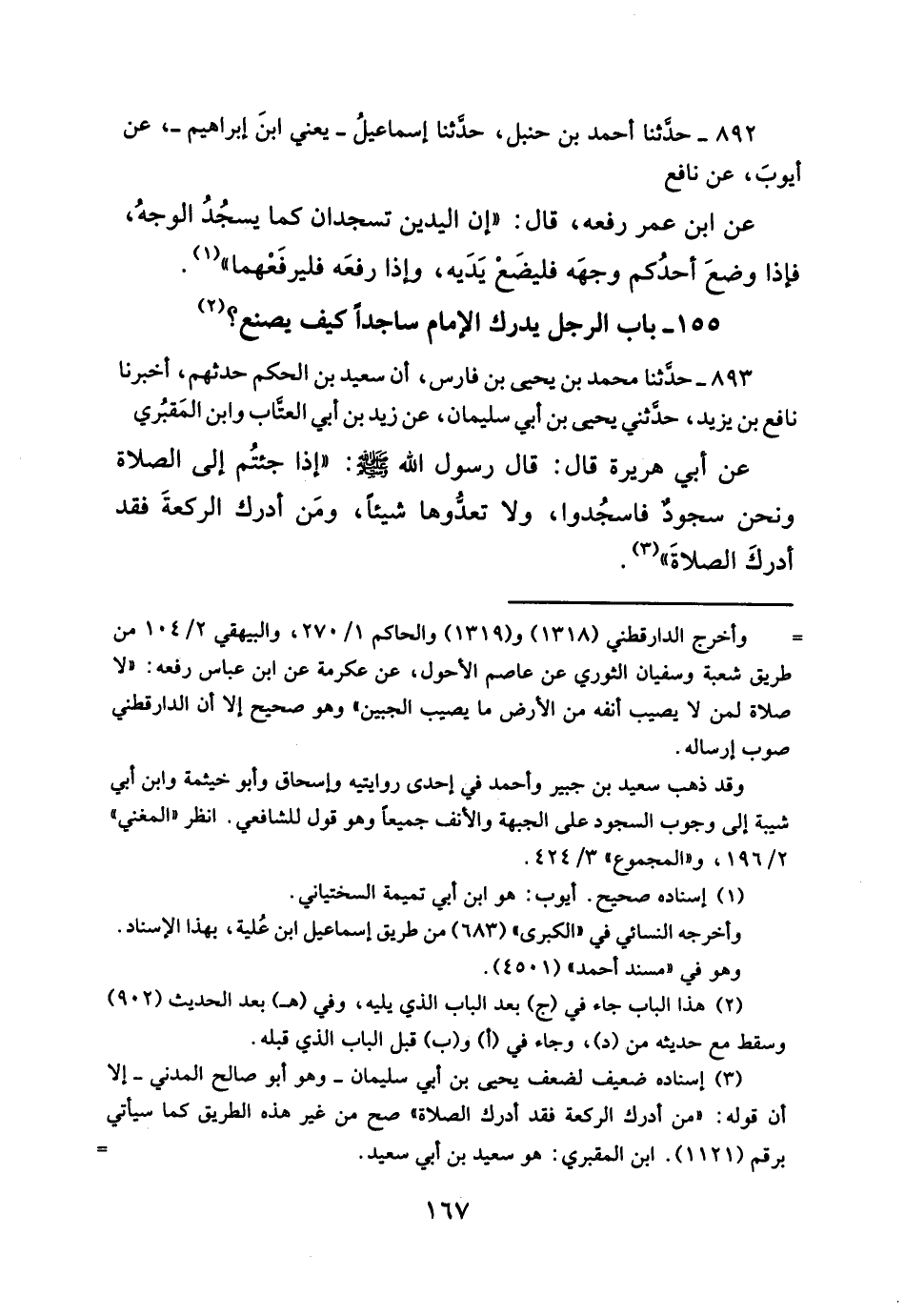 ٨٩٢ - حدثنا أحمد بن حنبل، حدثنا إسماعيلُ- يعنى ابنَ إبراهيم-,عن أيوبَ، عن نافع