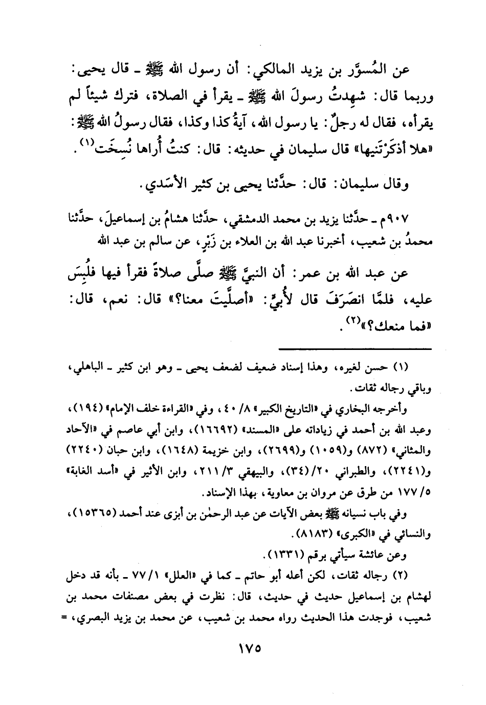 ٩٠٧ م - حدثنا يزيد بن محمد الدمشقي، حدثنا هشامُ بن إسماعيلَ، حدَّثنا محمدُ بن شعيب، أخبرنا عبد الله بن العلاء بن زَبر، عن سالم بن عبد الله