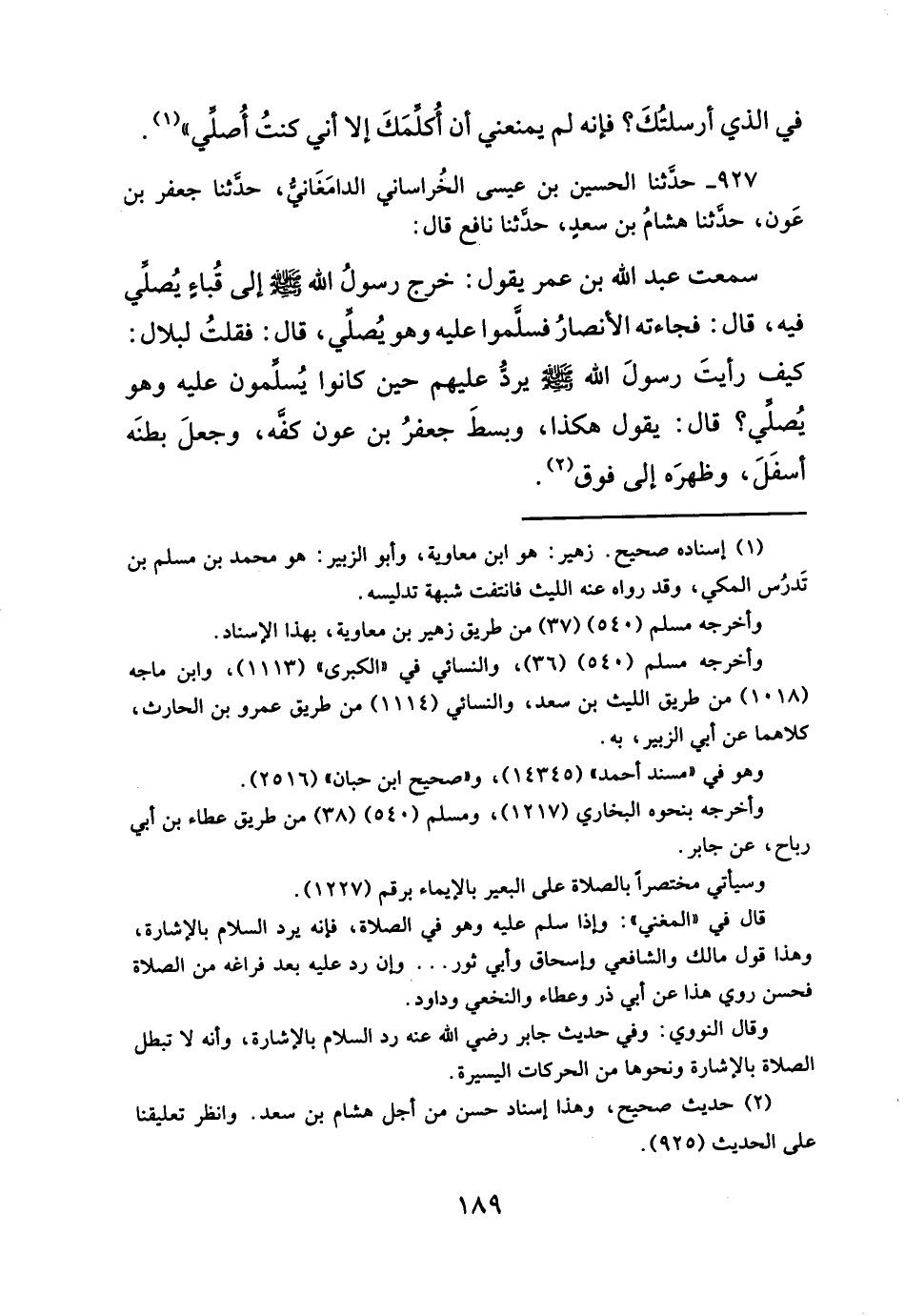 ٩٢٧ - حدَثنا الحسين بن عيسى الخُراسانى الدامَغَانيُّ، حدثنا جعفر بن عَون، حدثنا هشامُ بن سعدٍ، حدثنا نافع قال: