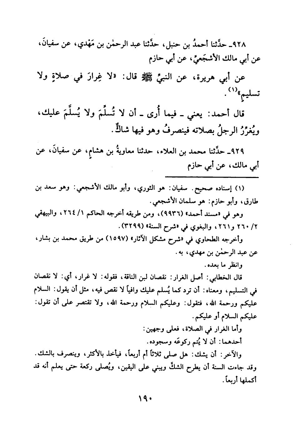 قال أحمد: يعني- فيما أُرى- أن لا تُسلمَ ولا يُسلَّمَ عليك، ويُغرِّرُ الرجلُ بصلاته فينصرفُ وهو فيها شاكٌّ.
