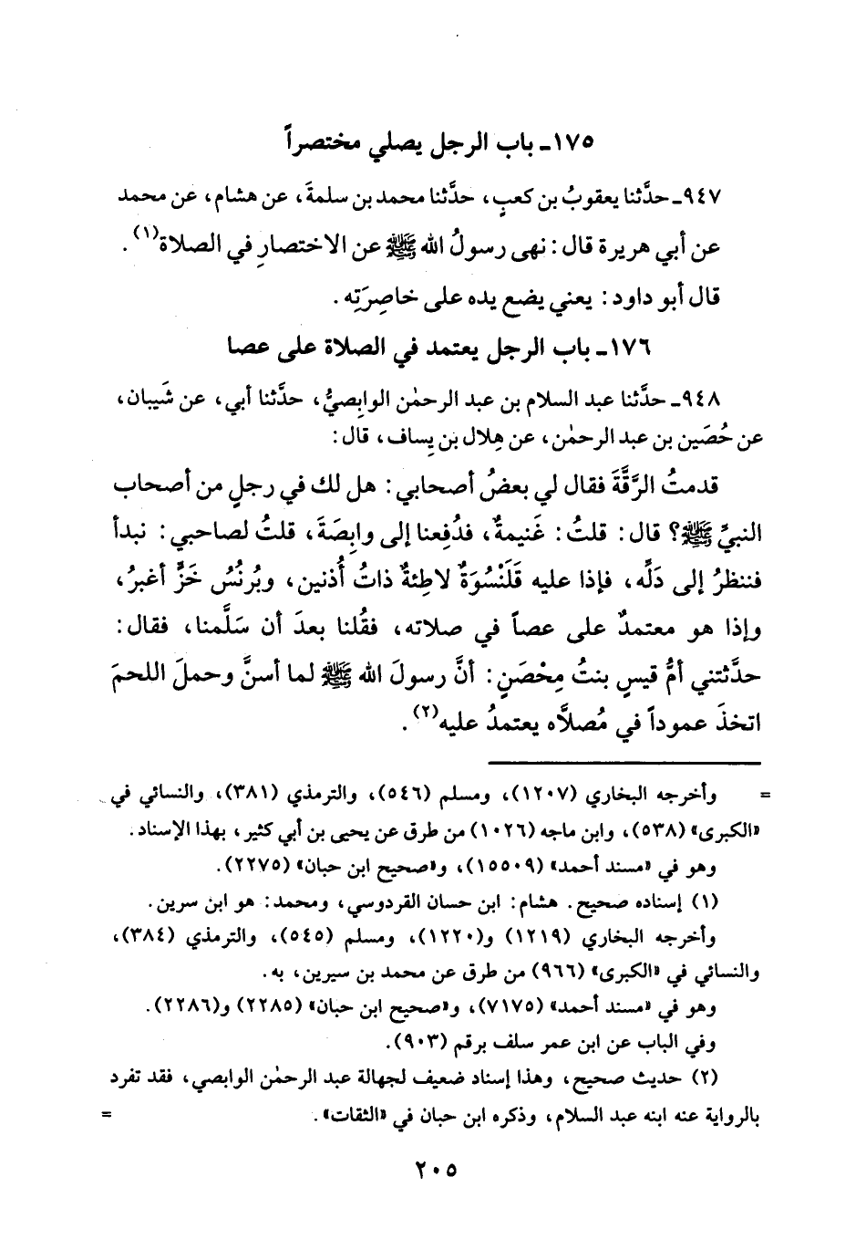 ١٧٦ - باب الرجل يعتمد في الصلاة على عصا