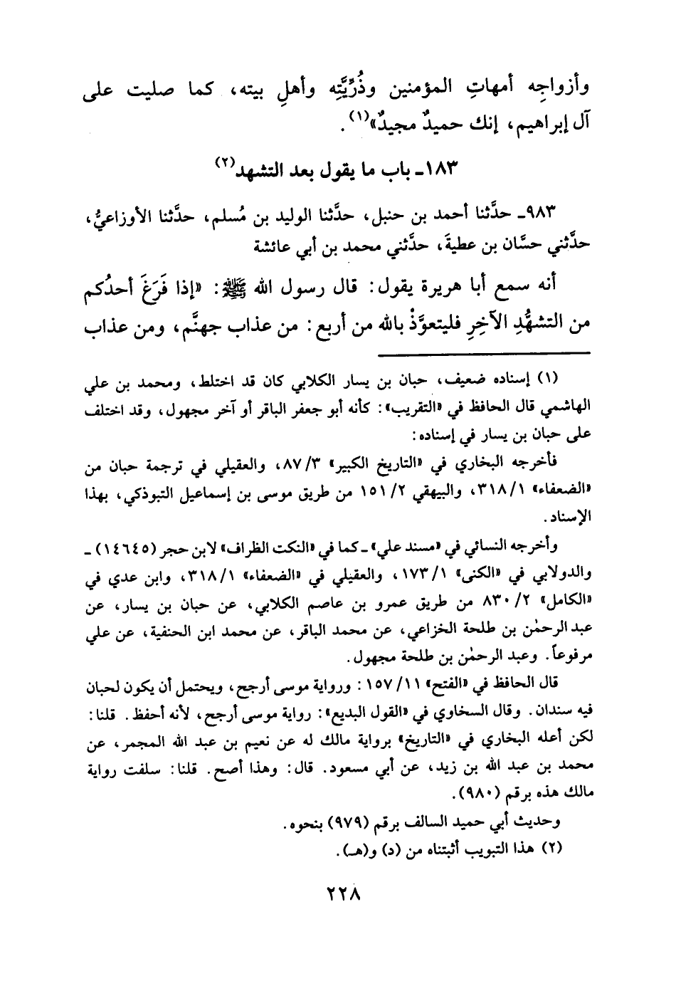 ٩٨٣ - حدَّثنا أحمد بن حنبل، حدَّثنا الوليد بن مُسلم، حدثنا الأوزاعيُ، حدثني حسّان بن عطيةَ، حدَثني محمد بن أبي عائشة