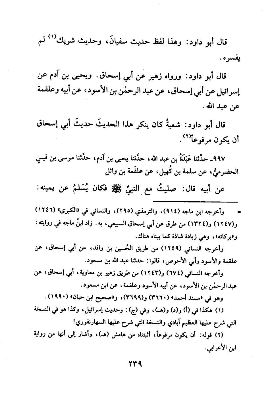 قال أبو داود: ورواه زهير عن أبي إسحاق. ويحيى بن آدم عن إسرائيل عن أبي إسحاق، عن عبد الرحمن بن الأسود، عن أبيه وعلقمة عن عبد الله.