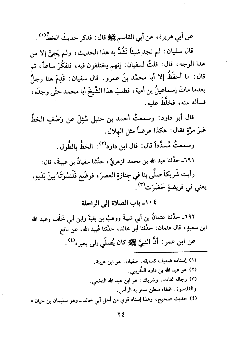 قال أبو داود: وسمعتُ أحمد بن حنبل سُئِلَ عن وَصفِ الخطِّ غيرَ مرَّةٍ فقال: هكذا عرضاً مثل الهِلال.