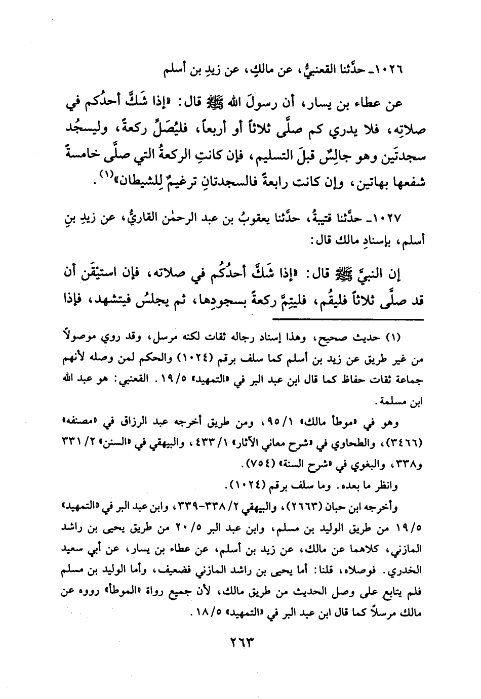 ١٠٢٦ - حدثنا القعنبيُّ، عن مالك، عن زيدِ بن أسلم