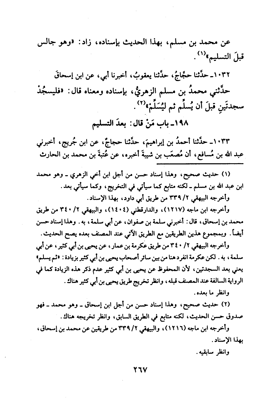 حدّثني محمدُ بن مسلم الزهريُ، بإسناده ومعناه قال: "فليسجُد سجدتَينِ قبلَ أن يُسلّم ثم ليُسَلِّم " (¬٢).