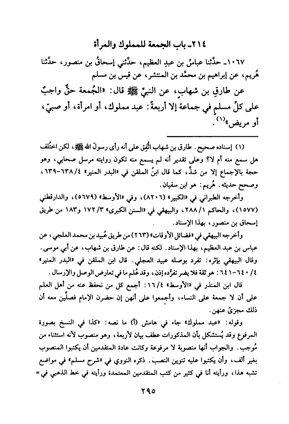 ٢١٤ - باب الجمعة للمملوك والمرأة