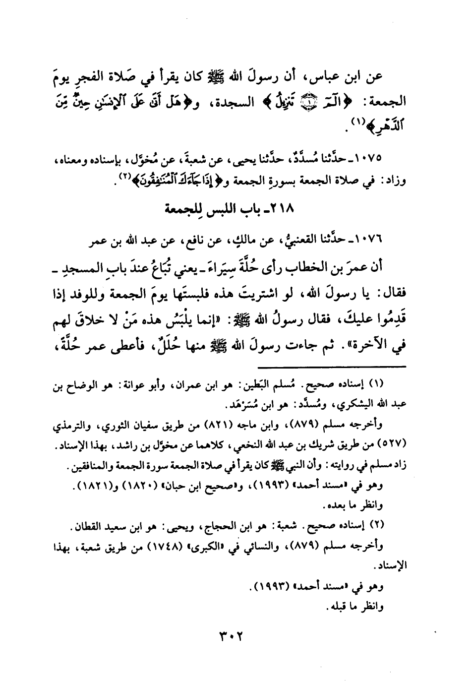 ١٠٧٥ - حدثنا مُسددْ، حدثنا يحيى، عن شعبةَ، عن مُخوّل، بإسناده ومعناه، وزاد: في صلاة الجمعة بسورةِ الجمعة {إِذَا جَاءَكَ الْمُنَافِقُونَ} (¬٢).