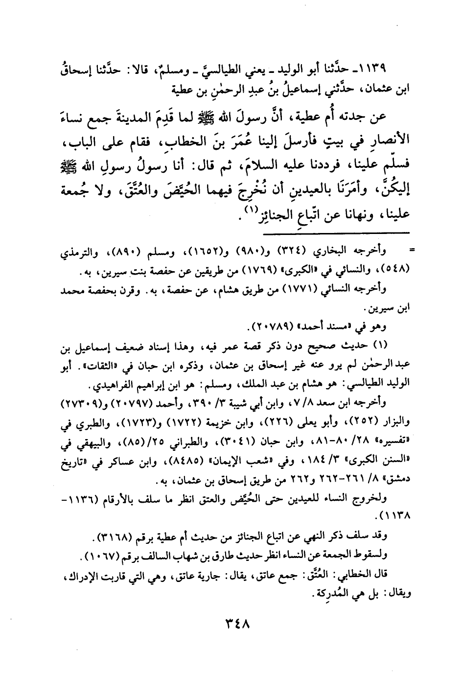 ١١٣٩ - حدثنا أبو الوليد - يعني الطيالسيَّ - ومسلم، قالا: حدثنا إسحاقُ ابن عثمان، حدّثني إسماعيلُ بنُ عبدِ الرحمنِ بن عطية