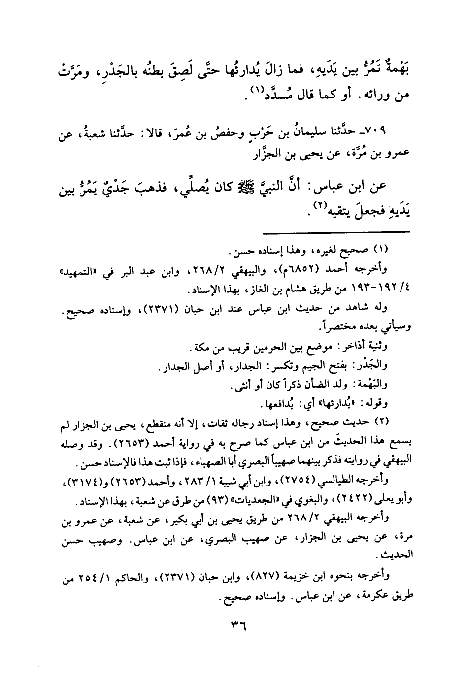 ٧٠٩ - حدثنا سليمانُ بن حَرب وحفصُ بن عُمرَ، قالا: حدَثنا شعبةُ، عن عمرو بن مُرَة، عن يحيى بن الجزار