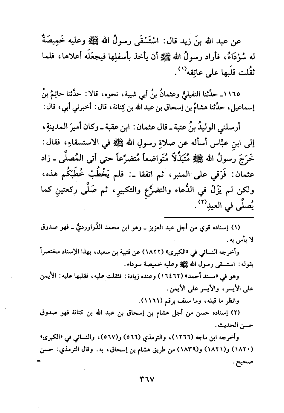 ١١٦٥ - حدثنا النُّفيليُّ وعثمانُ بنُ أبي شيبة، نحوه، قالا: حدثنا حاتِمُ بنُ إسماعيل، حدثنا هشامُ بن إسحاق بن عبد الله بن كِنانة، قال: أخبرني أبي، قال: