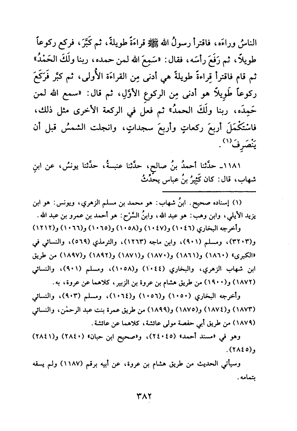 ١١٨١ - حدثنا أحمدُ بنُ صالح، حدثنا عنبسةُ، حدثنا يونُس، عن ابنِ شهاب، قال: كان كَثِيرُ بنُ عباس يحدِّثُ