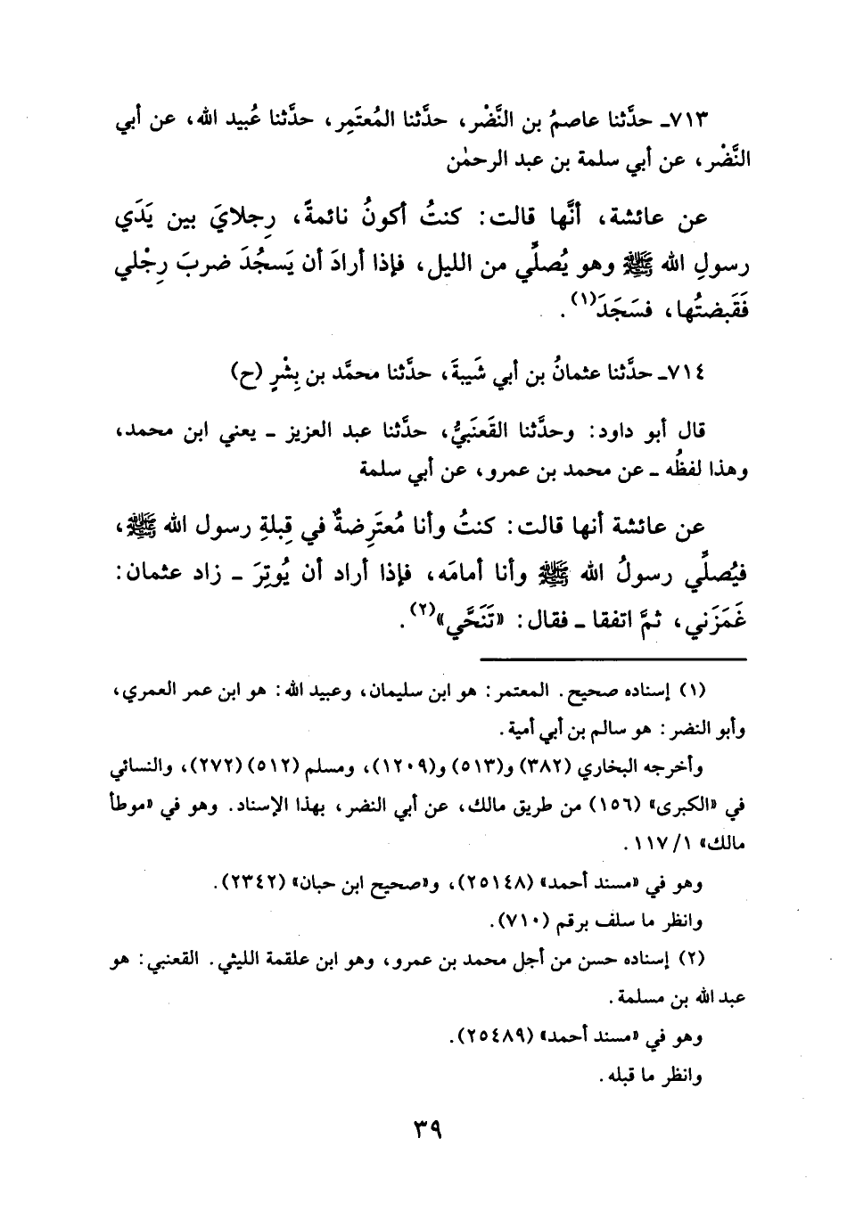 ٧١٣ - حدثنا عاصمُ بن النَّضر، حدثنا المُعتَمِر، حدثنا عُبيد الله، عن أبي النضر، عن أبي سلمة بن عبد الرحمن