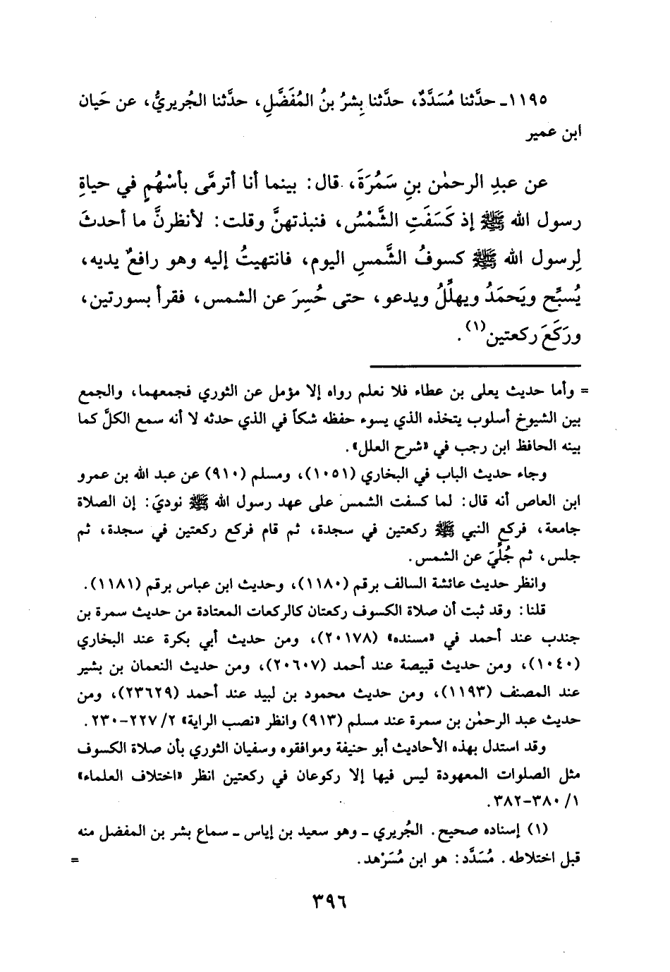 ١١٩٥ - حدثنا مُسَدد، حدثنا بِشرُ بنُ المُفَضَلِ، حدثنا الجُريريُّ، عن حَيان ابن عمير