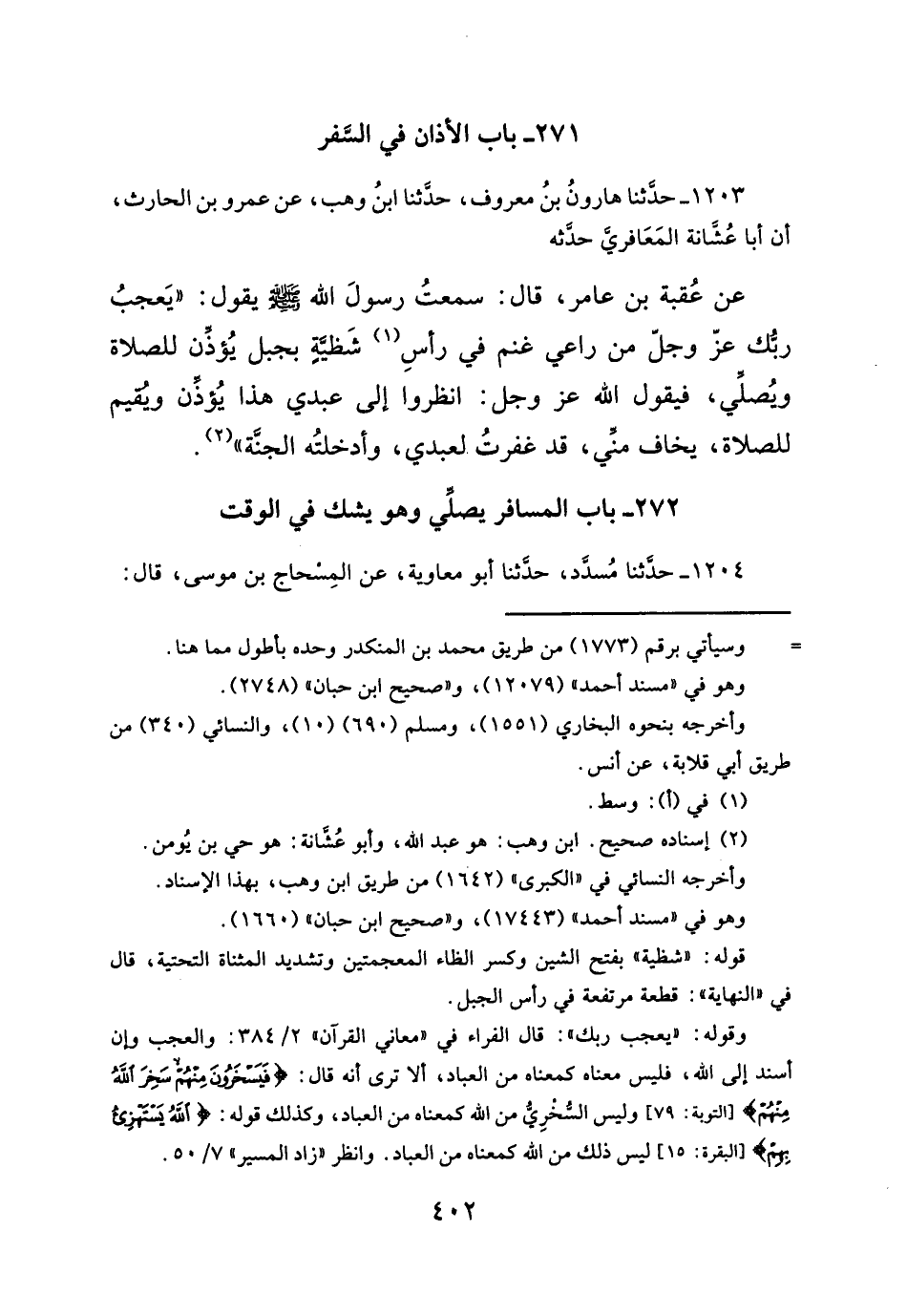 ١٢٠٣ - حدثنا هارونُ بنُ معروف، حدثنا ابنُ وهب، عن عمرو بن الحارث، أن أبا عُشَانة المَعَافري حدَّثه