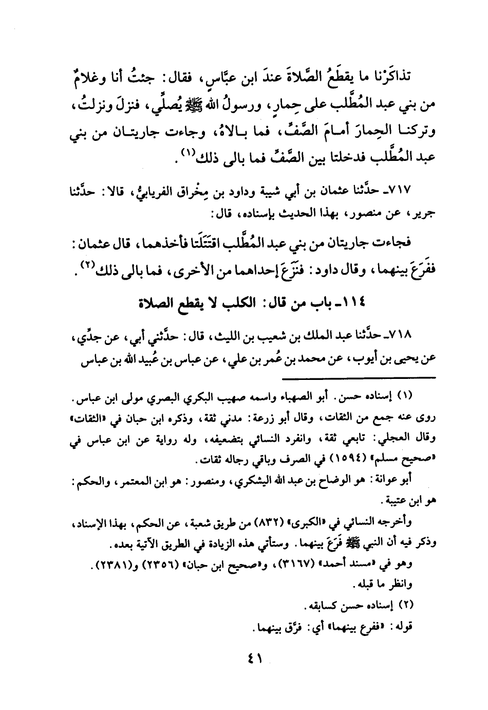١١٤ - باب من قال: الكلب لا يقطع الصلاة