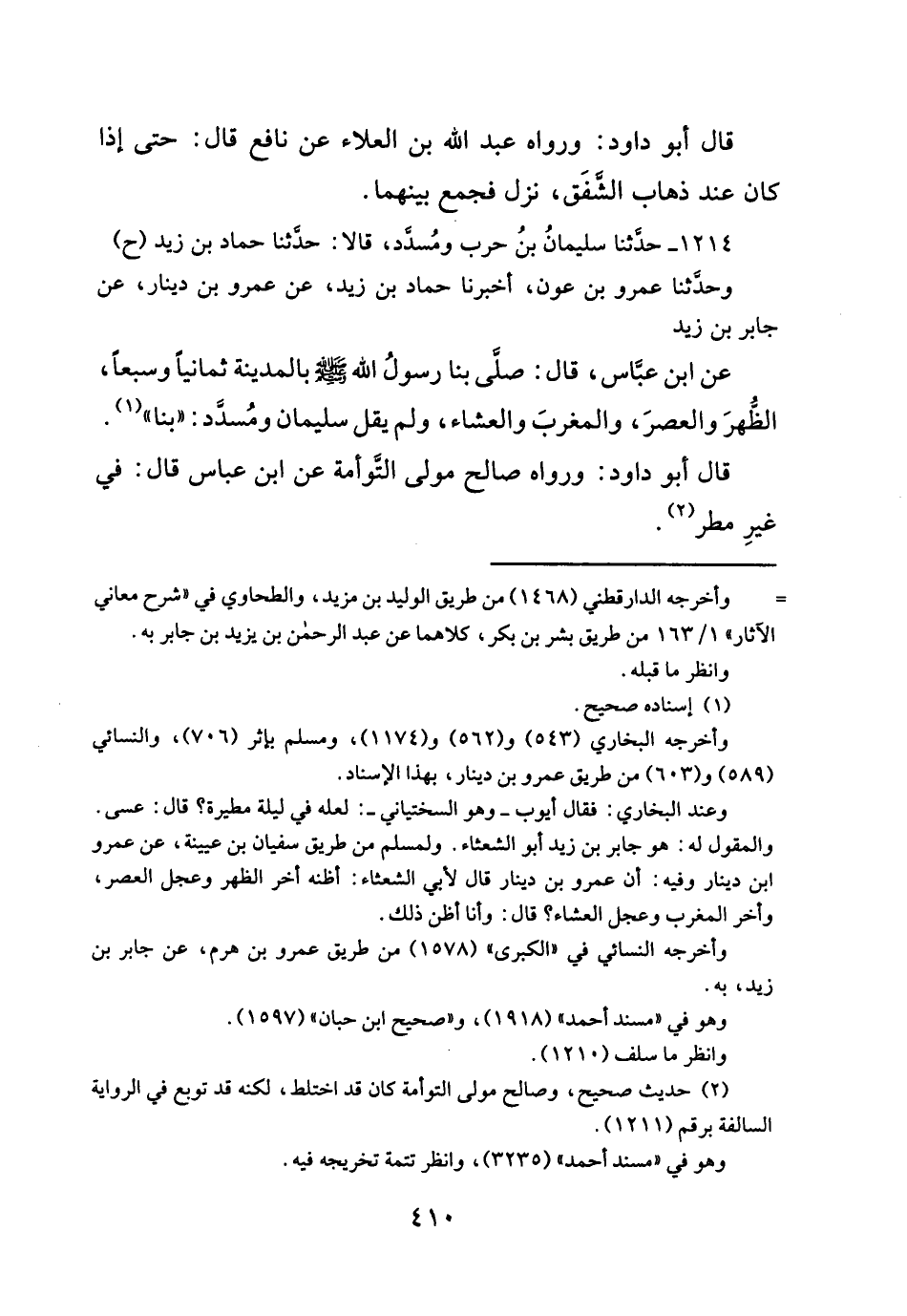 ١٢١٤ - حدثنا سليمانُ بنُ حرب ومُسدد، قالا: حدثنا حماد بن زيد (ح) وحدَثنا عمرو بن عون، أخبرنا حماد بن زيد، عن عمرو بن دينار، عن جابر بن زيد
