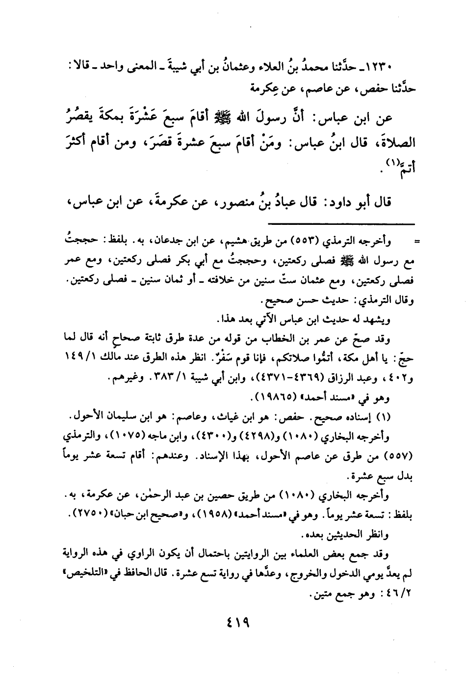 ١٢٣٠ - حدثنا محمدُ بنُ العلاء وعثمانُ بن أبي شيبةَ - المعنى واحد - قالا: حدثنا حفص، عن عاصم، عن عِكرمة