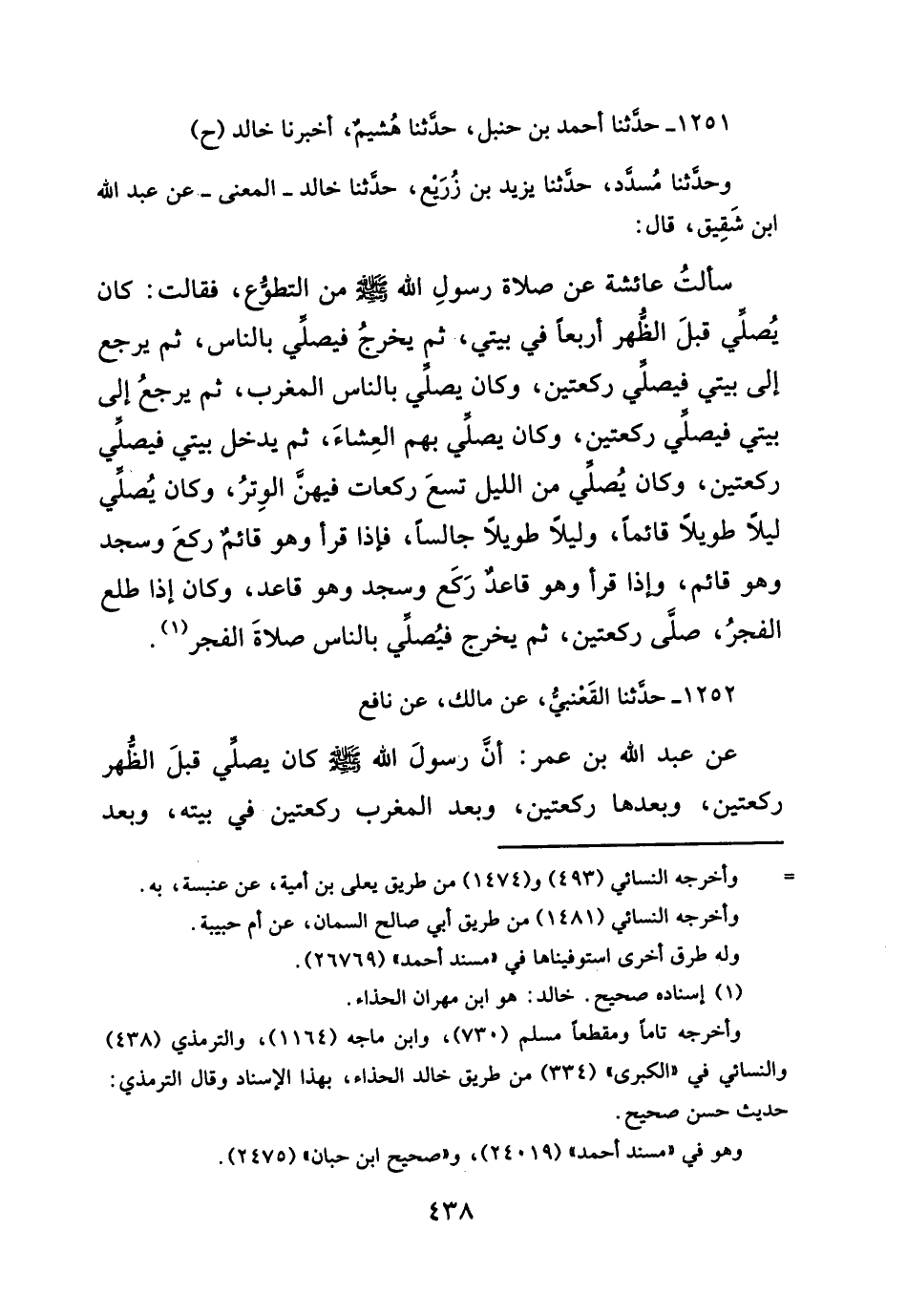 ١٢٥١ - حدثنا أحمد بن حنبل، حدثنا هُشيم، أخبرنا خالد (ح)