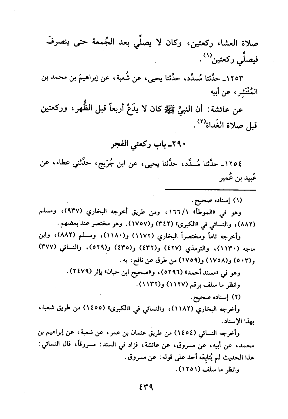 ١٢٥٣ - حدثنا مُسدَّدٌ، حدثنا يحيى، عن شُعبة، عن إبراهيمَ بن محمد بن المُنتَشِر، عن أبيه