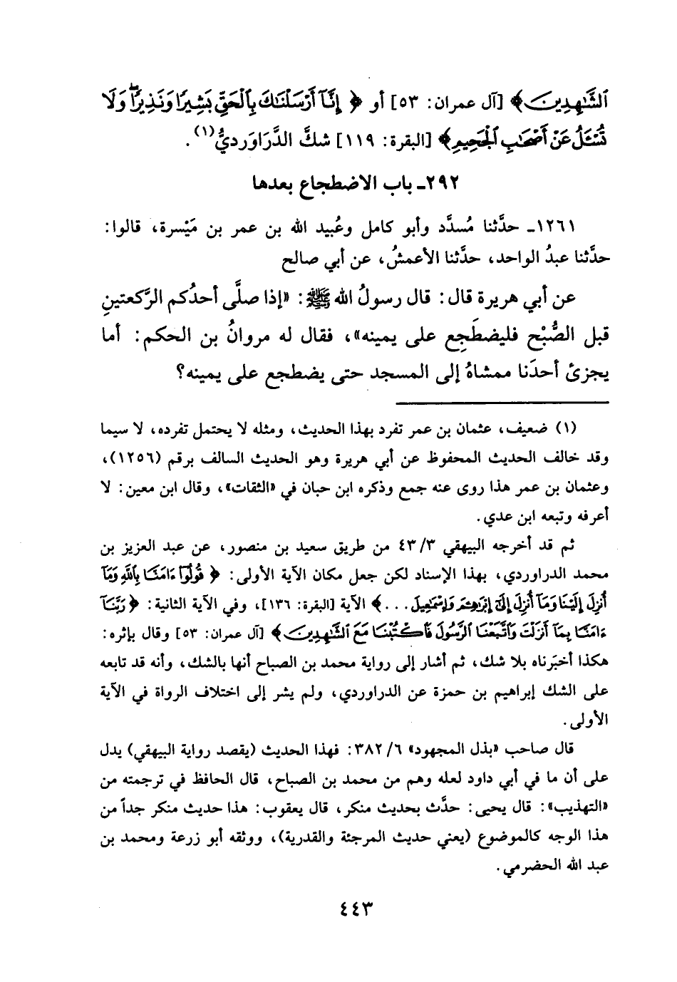 ٢٩٢ - باب الاضطجاع بعدها