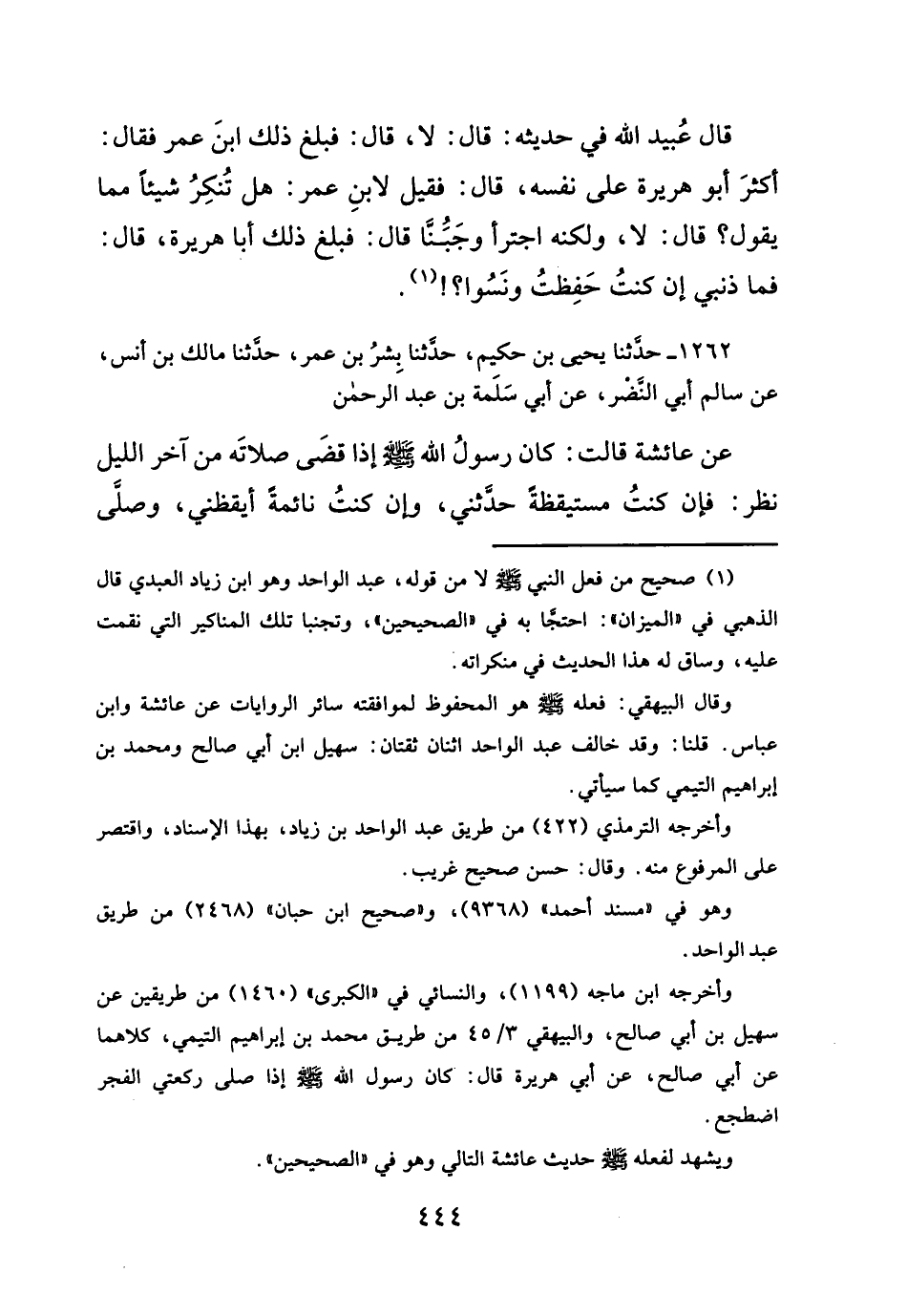 ١٢٦٢ - حدثنا يحيى بن حكيم، حدثنا بِشرُ بن عمر، حدثنا مالك بن أنس، عن سالم أبي النضر، عن أبي سَلَمة بن عبد الرحمن