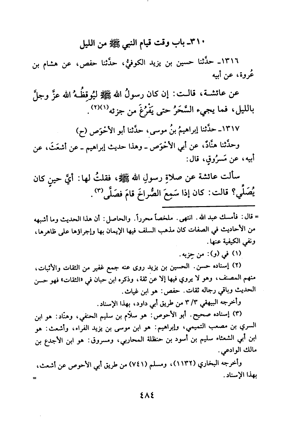 ٣١٠ - باب وقت قيام النبي - صلَّى الله عليه وسلم - من الليل