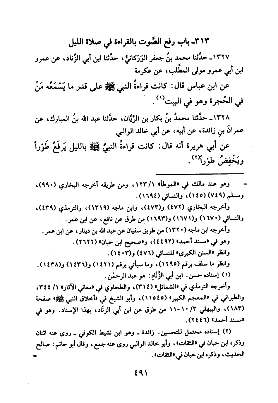 ٣١٣ - باب رفع الصوت بالقراءة في صلاة الليل