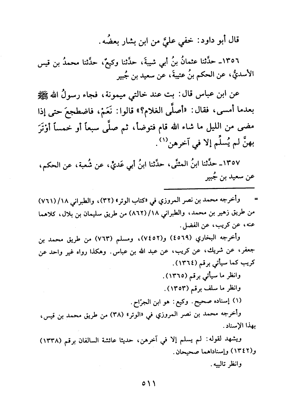 ١٣٥٦ - حدَّثنا عثمانُ بنُ أبي شيبةَ، حدَّثنا وكيعٌ، حدَّثنا محمدُ بن قيس الأسديُّ، عن الحكم بنُ عتيبةَ، عن سعيد بن جُبير