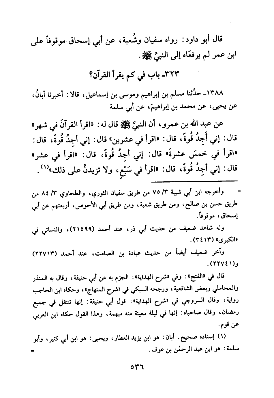 ٣٢٣ - باب في كم يقرأ القرآن؟