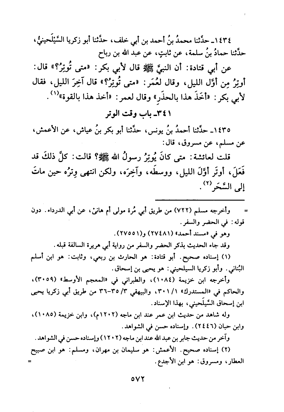 ١٤٣٥ - حدَّثنا أحمدُ بنُ يونس، حدَّثنا أبو بكر بنُ عياش، عن الأعمش، عن مسلم، عن مسروق، قال: