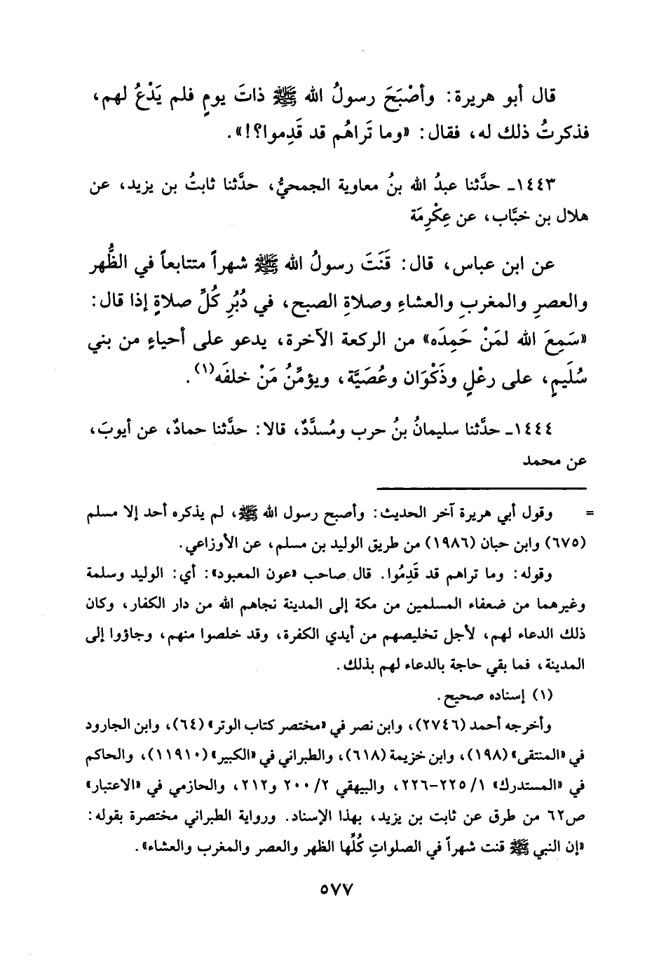 وأخرجه أحمد (٢٧٤٦)، وابن نصر في "مختصر كتاب الوتر" (٦٤)، وابن الجارود في "المنتقى" (١٩٨)، وابن خزيمة (٦١٨)، والطبراني في "الكبير" (١١٩١٠)، والحاكم في "المستدرك" ١/ ٢٢٥ - ٢٢٦، والبيهقي ٢/ ٢٠٠ و ٢١٢، والحازمي في "الاعتبار" ص ٦٢ من طرق عن ثابت بن يزيد، بهذا الإسناد. ورواية الطبراني مختصرة بقوله: "إن النبي - صلَّى الله عليه وسلم - قنت شهراً في الصلواتِ كُلِّها الظهر والعصر والمغرب والعشاء".