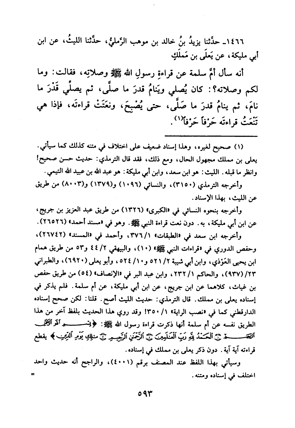 ١٤٦٦ - حدَّثنا يزيدُ بنُ خالد بن موهب الرَّمليُّ، حدَّثنا الليثُ، عن ابن أبي مليكة، عن يَعلَى بن مَملَكٍ