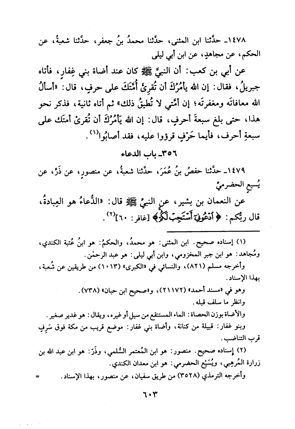 ١٤٧٩ - حدَّثنا حفصُ بنُ عُمَرَ، حدَّثنا شعبةُ، عن منصورٍ، عن ذرٍّ، عن