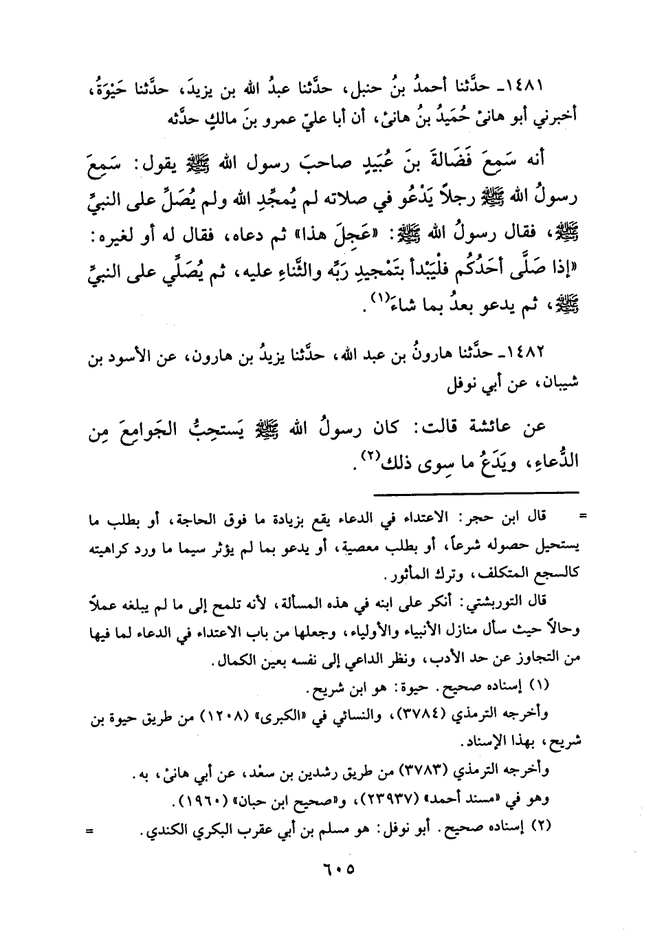 ١٤٨١ - حدَّثنا أحمدُ بنُ حنبل، حدَّثنا عبدُ الله بن يزيدَ، حدَّثنا حَيوَةُ،