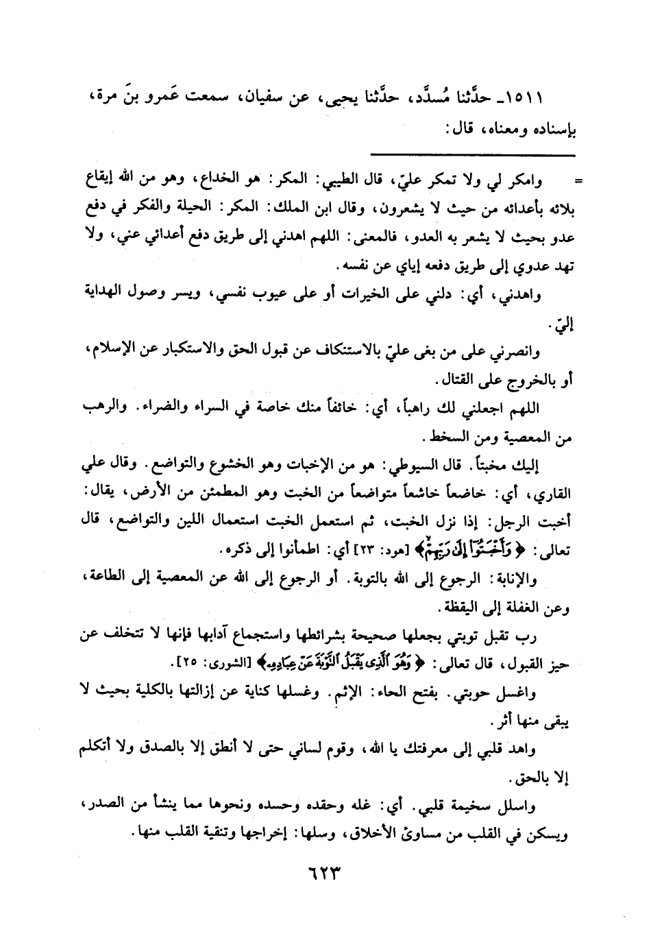 ١٥١١ - حدَّثنا مُسدَد، حدَّثنا يحيى، عن سفيان، سمعت عَمرو بنَ مرة، بإسناده ومعناه، قال: