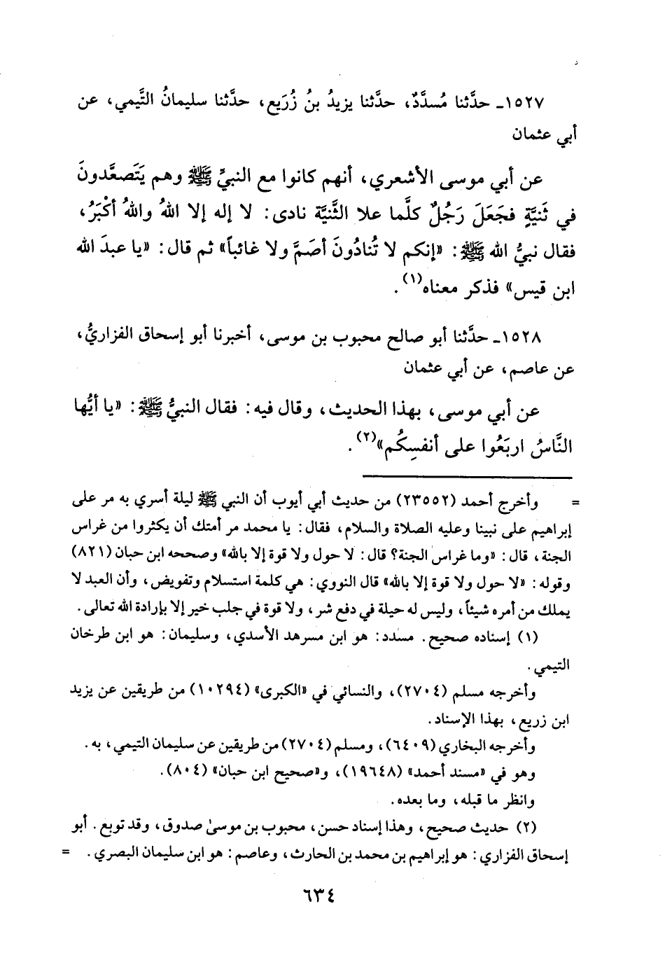 ١٥٢٧ - حدَّثنا مُسدَّدٌ، حدَّثنا يزيدُ بنُ زُرَيع، حدَّثنا سليمانُ التَّيمي، عن أبي عثمان