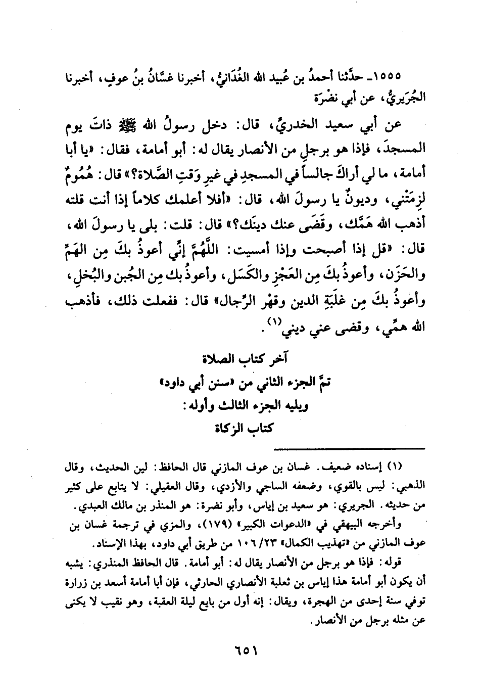 آخر كتاب الصلاة تمَّ الجزء الثاني عن "سنن أبي داود" ويليه الجزء الثالث وأوله: كتاب الزكاة