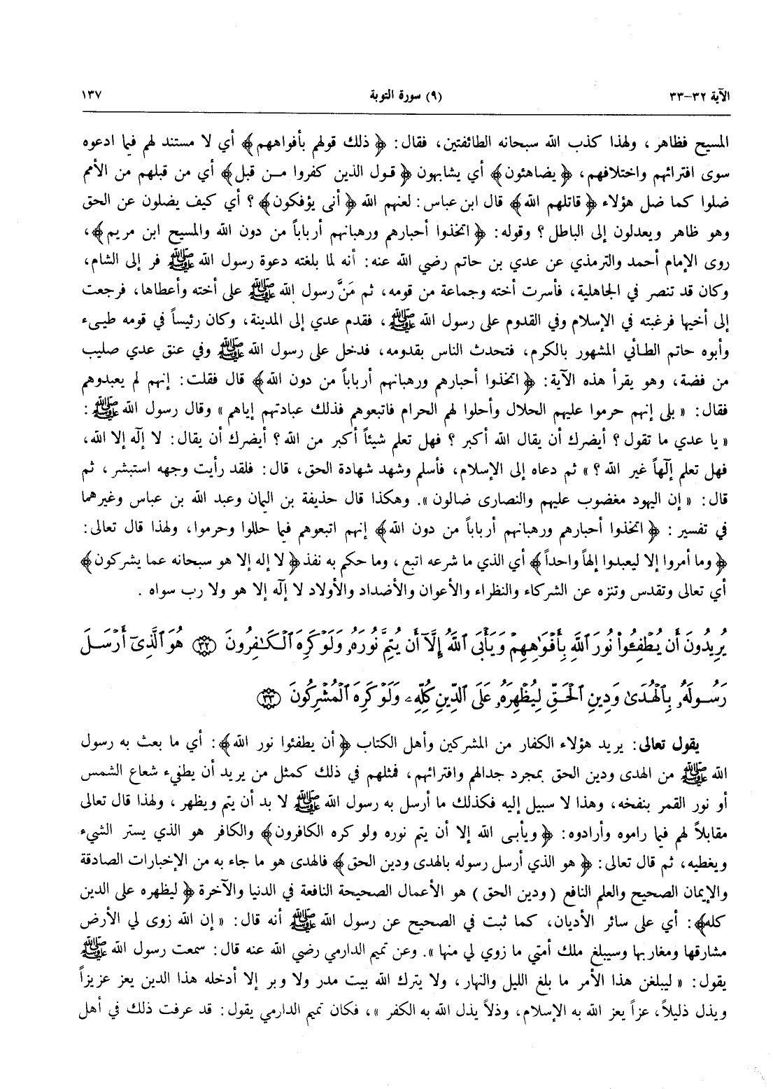 - 33 - هُوَ الَّذِي أَرْسَلَ رَسُولَهُ بِالْهُدَى وَدِينِ الْحَقِّ لِيُظْهِرَهُ عَلَى الدِّينِ كُلِّهِ وَلَوْ كَرِهَ الْمُشْرِكُونَ