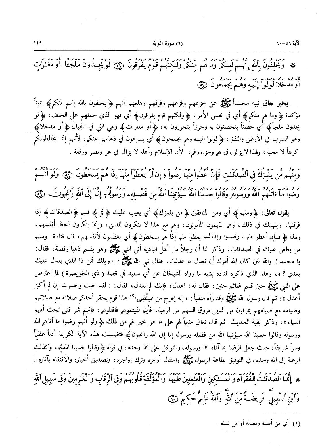 - 60 - إِنَّمَا الصَّدَقَاتُ لِلْفُقَرَآءِ وَالْمَسَاكِينِ وَالْعَامِلِينَ عَلَيْهَا وَالْمُؤَلَّفَةِ قُلُوبُهُمْ وَفِي الرِّقَابِ وَالْغَارِمِينَ وَفِي سَبِيلِ اللَّهِ وَاِبْنِ السَّبِيلِ فَرِيضَةً مِّنَ اللَّهِ وَاللَّهُ عَلِيمٌ حَكِيمٌ