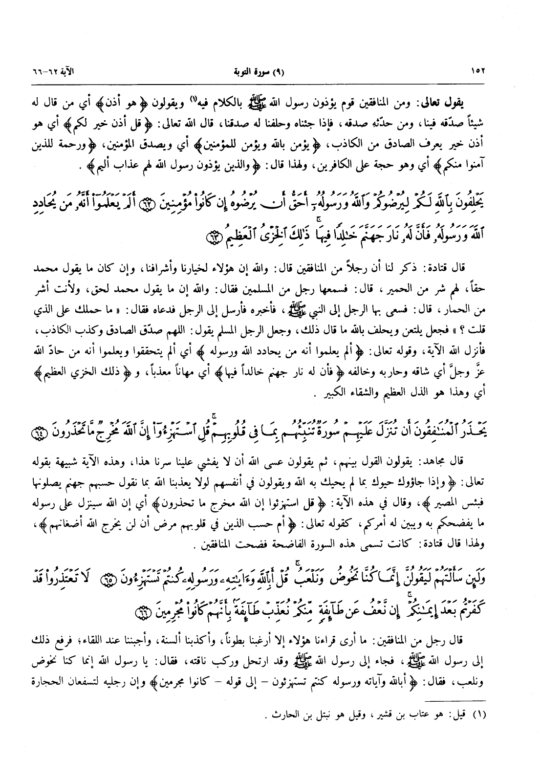 - 62 - يَحْلِفُونَ بِاللَّهِ لَكُمْ لِيُرْضُوكُمْ وَاللَّهُ وَرَسُولُهُ أَحَقُّ أَنْ يُرْضُوهُ إِنْ كَانُوا مُؤْمِنِينَ