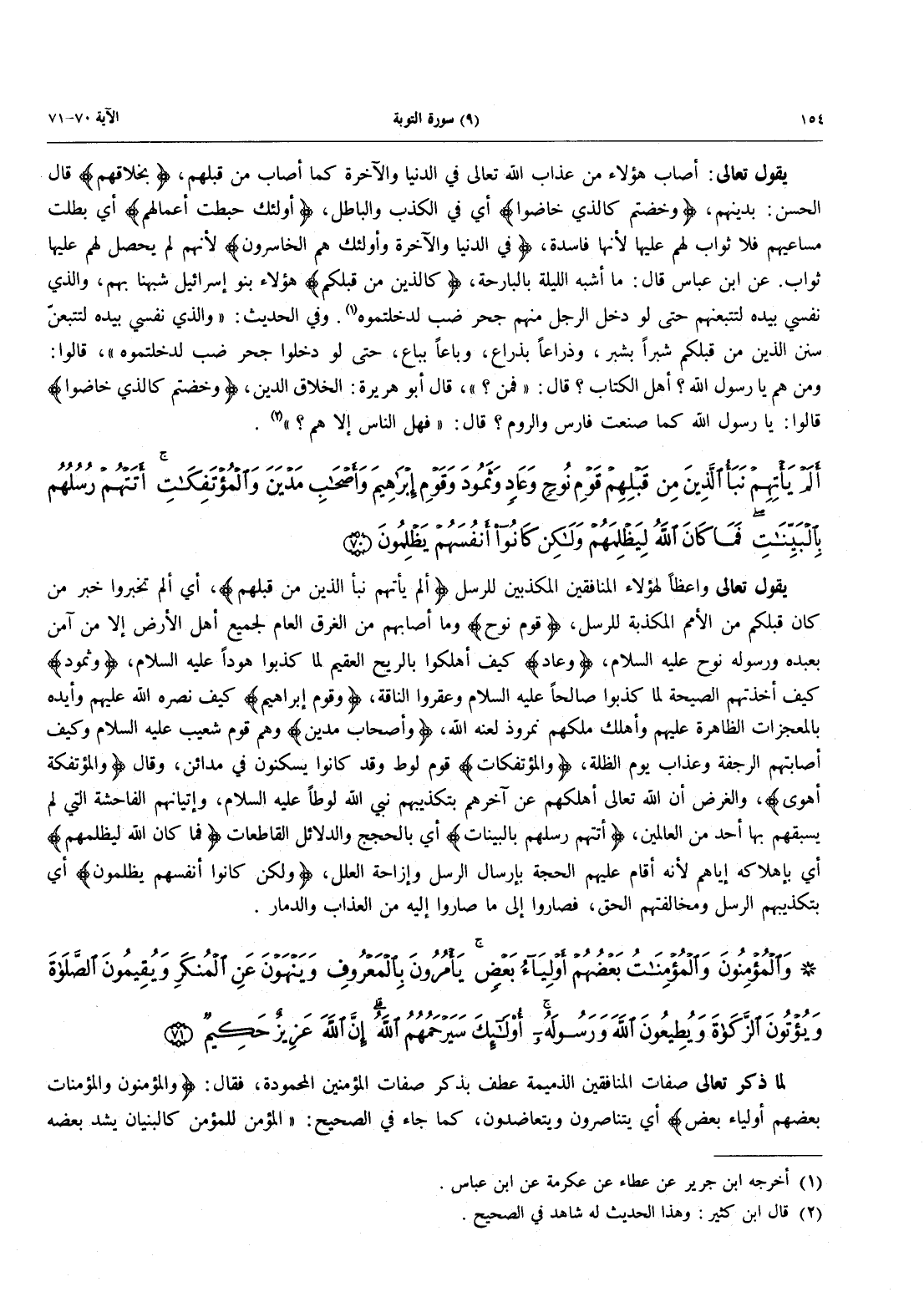 - 70 - أَلَمْ يَأْتِهِمْ نَبَأُ الَّذِينَ مِنْ قَبْلِهِمْ قَوْمِ نُوحٍ وَعَادٍ وَثَمُودَ وَقَوْمِ إِبْرَاهِيمَ وَأَصْحَابِ مَدْيَنَ وَالْمُؤْتَفِكَاتِ أَتَتْهُمْ رُسُلُهُمْ بِالْبَيِّنَاتِ فَمَا كَانَ اللَّهُ لِيَظْلِمَهُمْ وَلَكِنْ كَانُوا أَنْفُسَهُمْ يَظْلِمُونَ