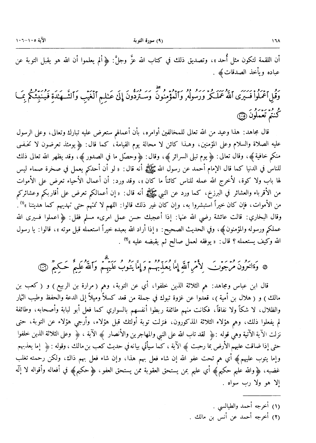 - 106 - وَآخَرُونَ مُرْجَوْنَ لِأَمْرِ اللَّهِ إِمَّا يُعَذِّبُهُمْ وَإِمَّا يَتُوبُ عَلَيْهِمْ وَاللَّهُ عَلِيمٌ حَكِيمٌ