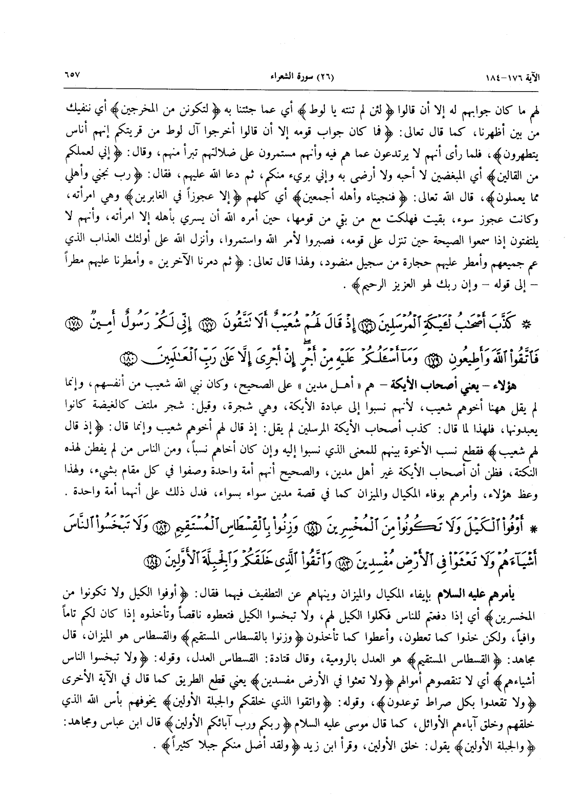- 176 - كَذَّبَ أَصْحَابُ الْأَيْكَةِ الْمُرْسَلِينَ