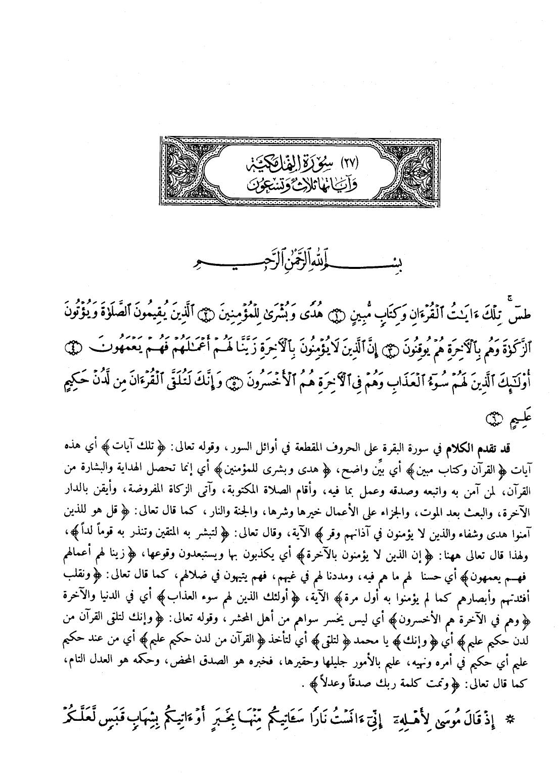 - 1 - طس تِلْكَ آيَاتُ الْقُرْآنِ وَكِتَابٍ مُبِينٍ