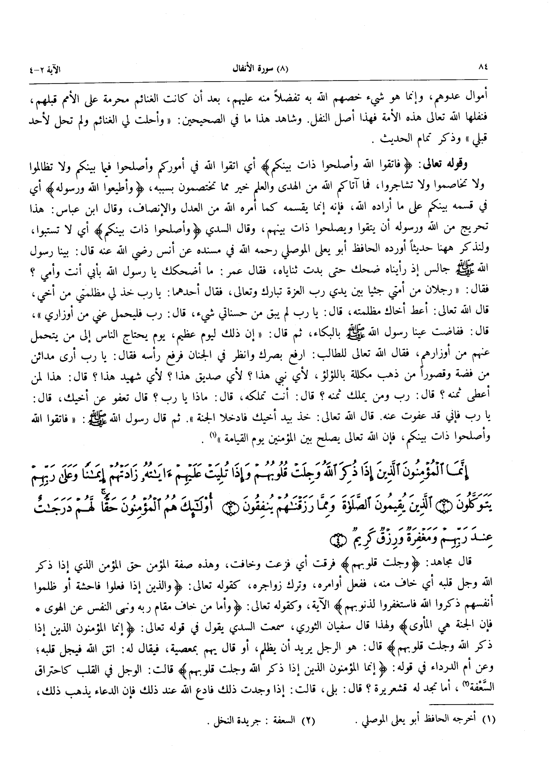 - 2 - إِنَّمَا الْمُؤْمِنُونَ الَّذِينَ إِذَا ذُكِرَ اللَّهُ وَجِلَتْ قُلُوبُهُمْ وَإِذَا تُلِيَتْ عَلَيْهِمْ آيَاتُهُ زَادَتْهُمْ إِيمَاناً وَعَلَى رَبِّهِمْ يَتَوَكَّلُونَ