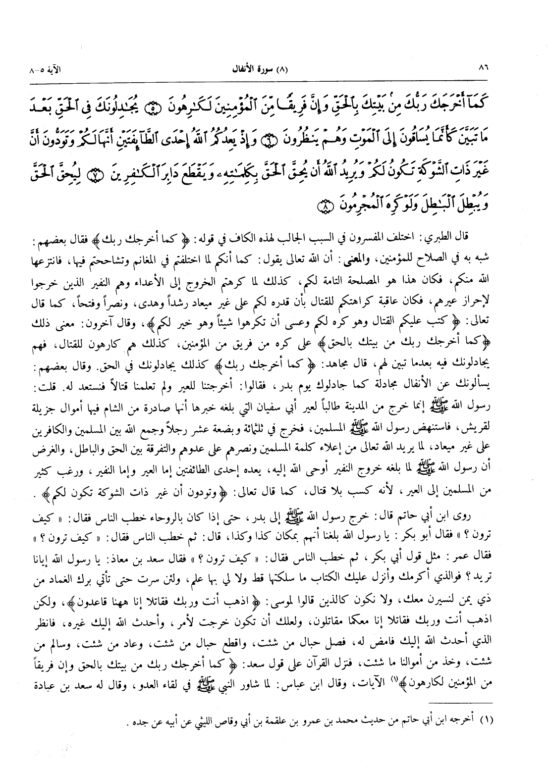 - 5 - كَمَآ أَخْرَجَكَ رَبُّكَ مِن بَيْتِكَ بِالْحَقِّ وَإِنَّ فَرِيقاً مِّنَ الْمُؤْمِنِينَ لَكَارِهُونَ
