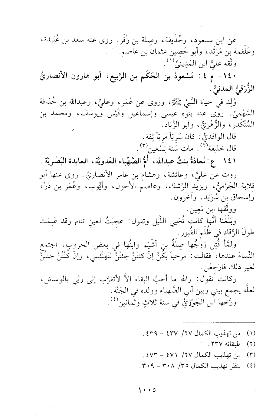 141 - ع: مُعَاذَةُ بِنْتُ عَبْدِ اللَّهِ أُمُّ الصَّهْبَاءِ الْعَدَوِيَّةُ، الْعَابِدَةُ الْبَصْرِيَّةُ. [الوفاة: 81 - 90 ه]