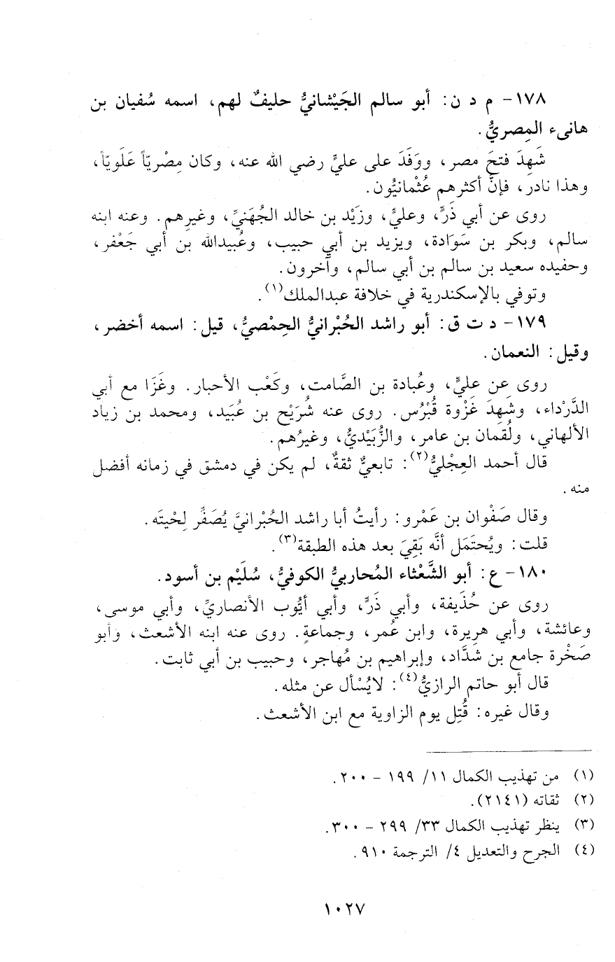 178 - م د ن: أَبُو سَالِمٍ الْجَيْشَانِيُّ حَلِيفٌ لَهُمْ، اسْمُهُ سُفْيَانُ بْنُ هَانِئٍ الْمَصْرِيُّ. [الوفاة: 81 - 90 ه]